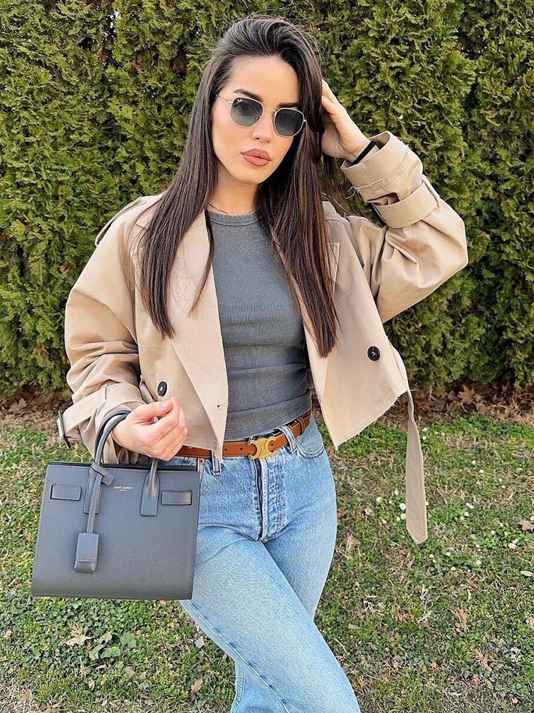 TRAF Women Coats Fashion With Belt Spring Crop Jackets Coat Vintage Long Sleeve Casual Street Female Outerwear Chic Tops