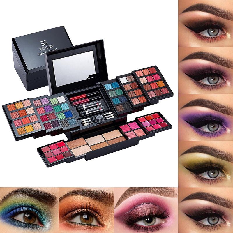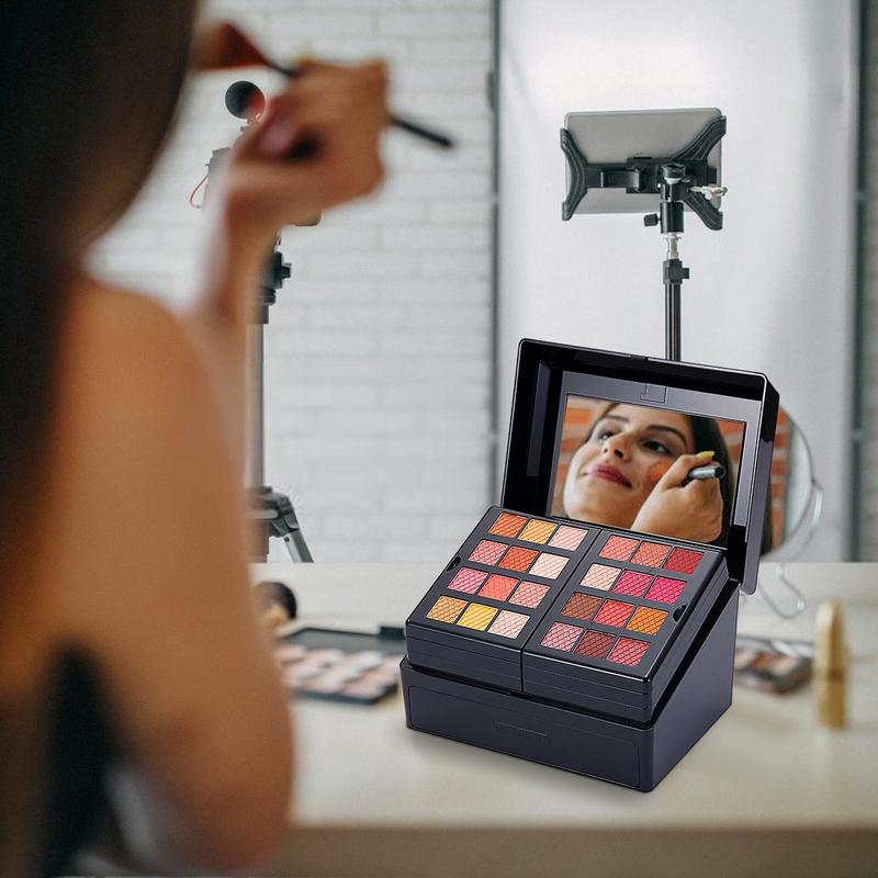 This all-in-one makeup case contains lip gloss, eyeshadow, lipstick, brow powder, brushes, and more. A makeup box can achieve multiple styles of full-face makeup to meet your different needs.